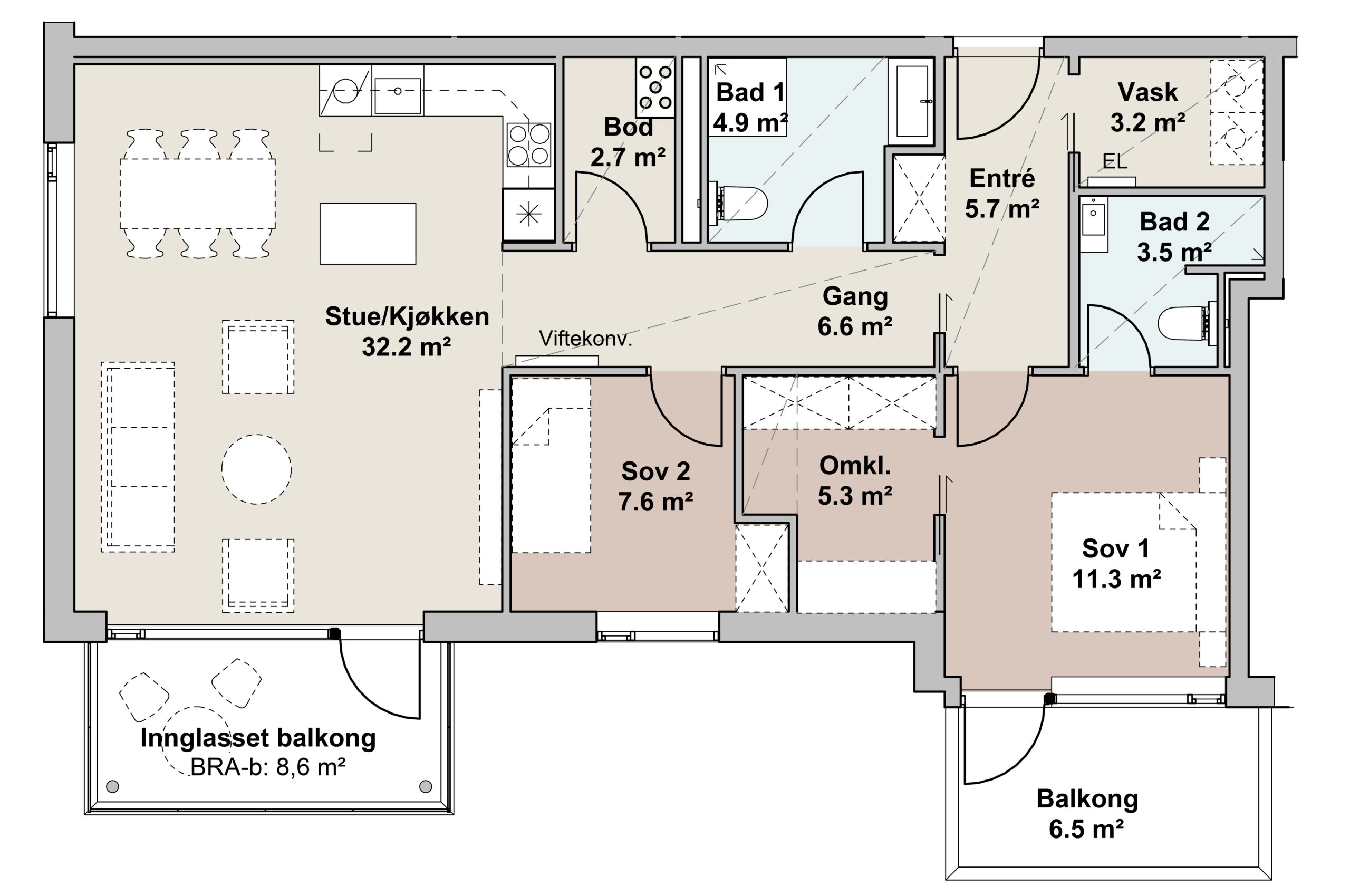 - Leilighet BRA-i: 88.1 m2