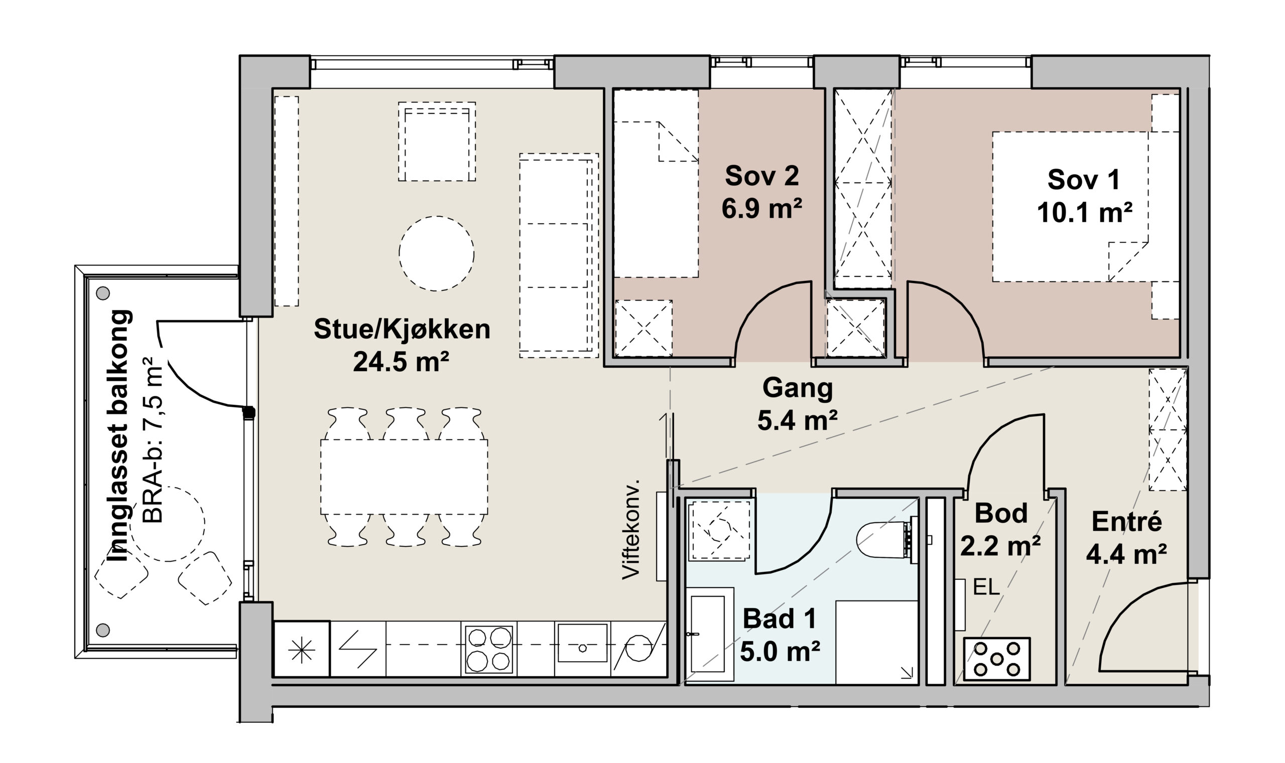 - Innglasset BRA-b: 7.5 m2